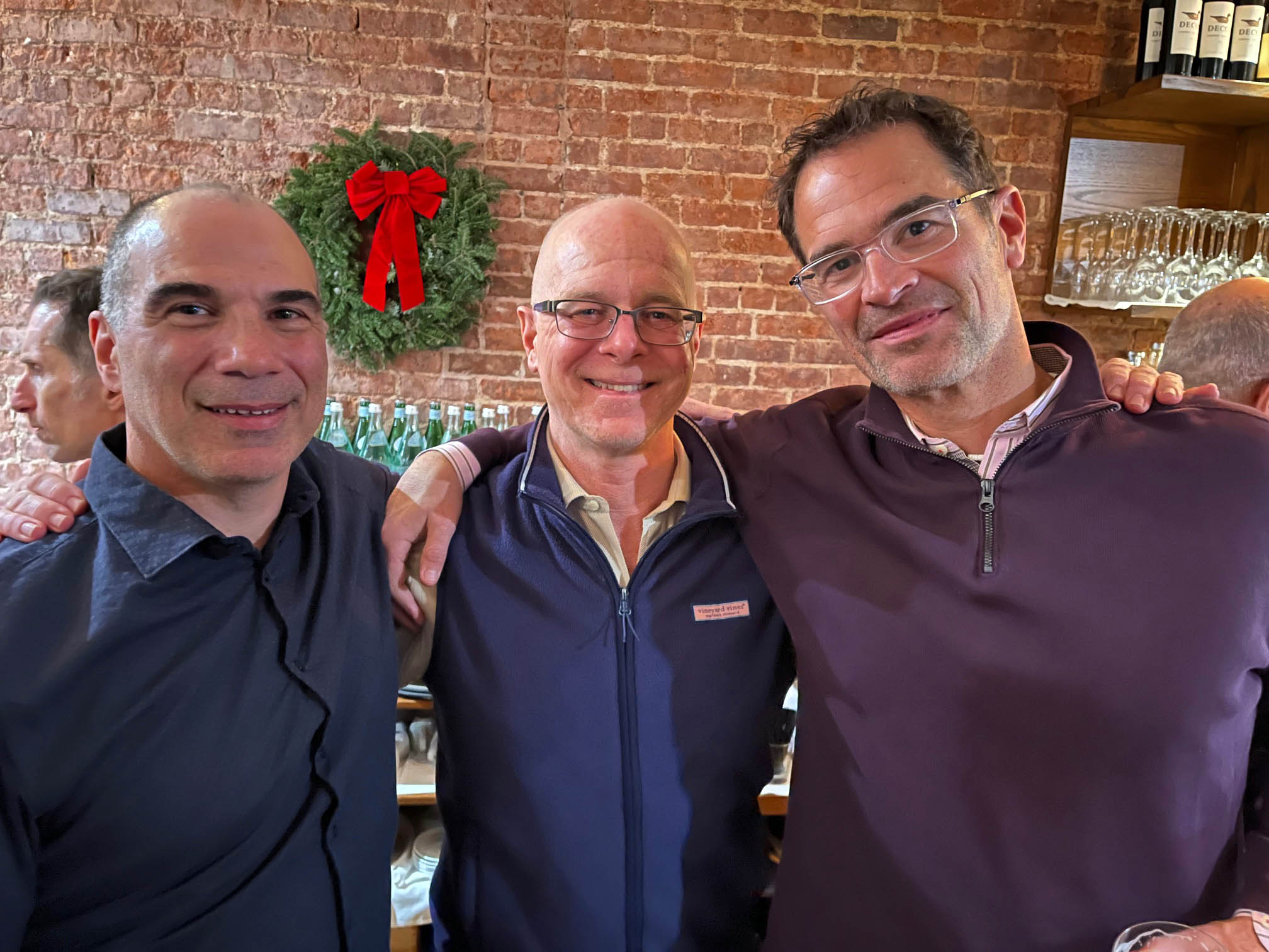 Brothers enjoy the holidays at Trattoria Trecolori in NYC, hosted by Jack Gonzalez ’91 and family.