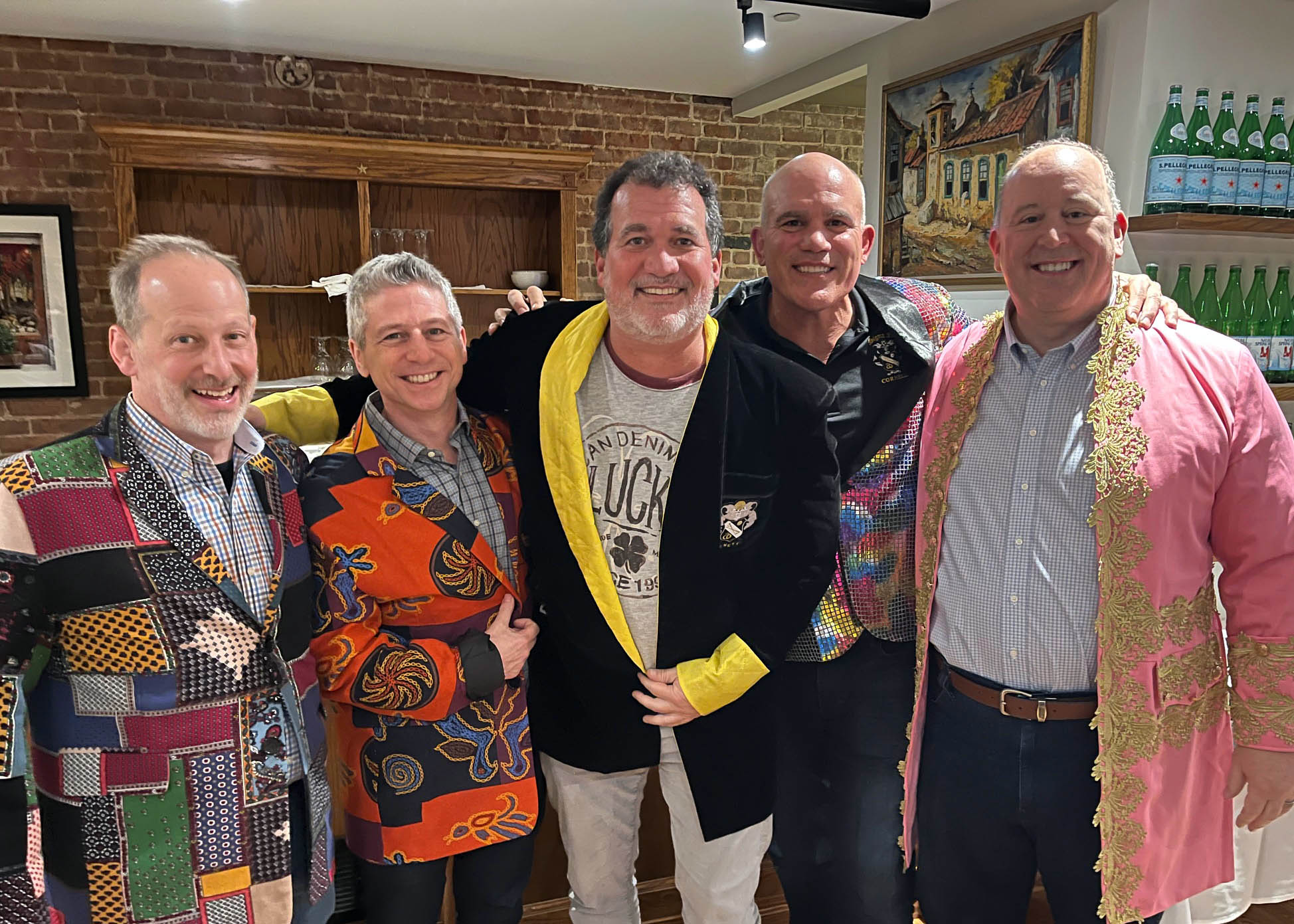 The Black Knight of Sigma Nu is an honor bestowed upon the brother of the year. The award is given out at the annual Snakes and Steaks holiday dinner in NYC. It comes with a custom dinner jacket. This year’s recipient was Marc Rosenthal ’91. Prior award winners pictured with Marc: Nat Wood ’92, Robert Cohen ’93, Marc Rosenthal ’91, Jeff Woodring ’93, and Marc Bruno ’93.