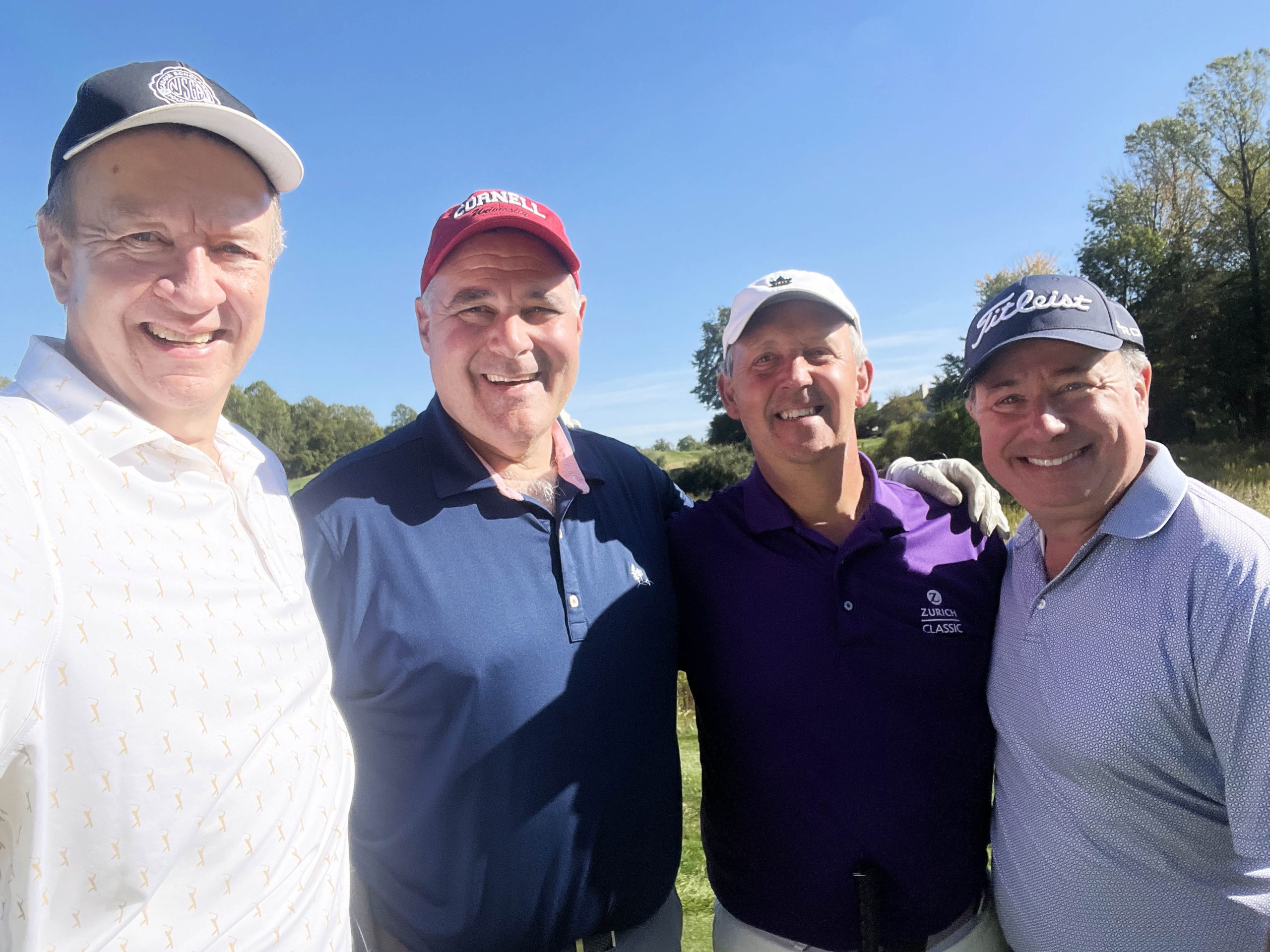 Great start to Homecoming weekend with golf in New Jersey: Jaan Janes ’85, Greg Sethares ’85, Pete Watts ’85, and Lou Solomon ’85. Thanks for hosting Pete!
