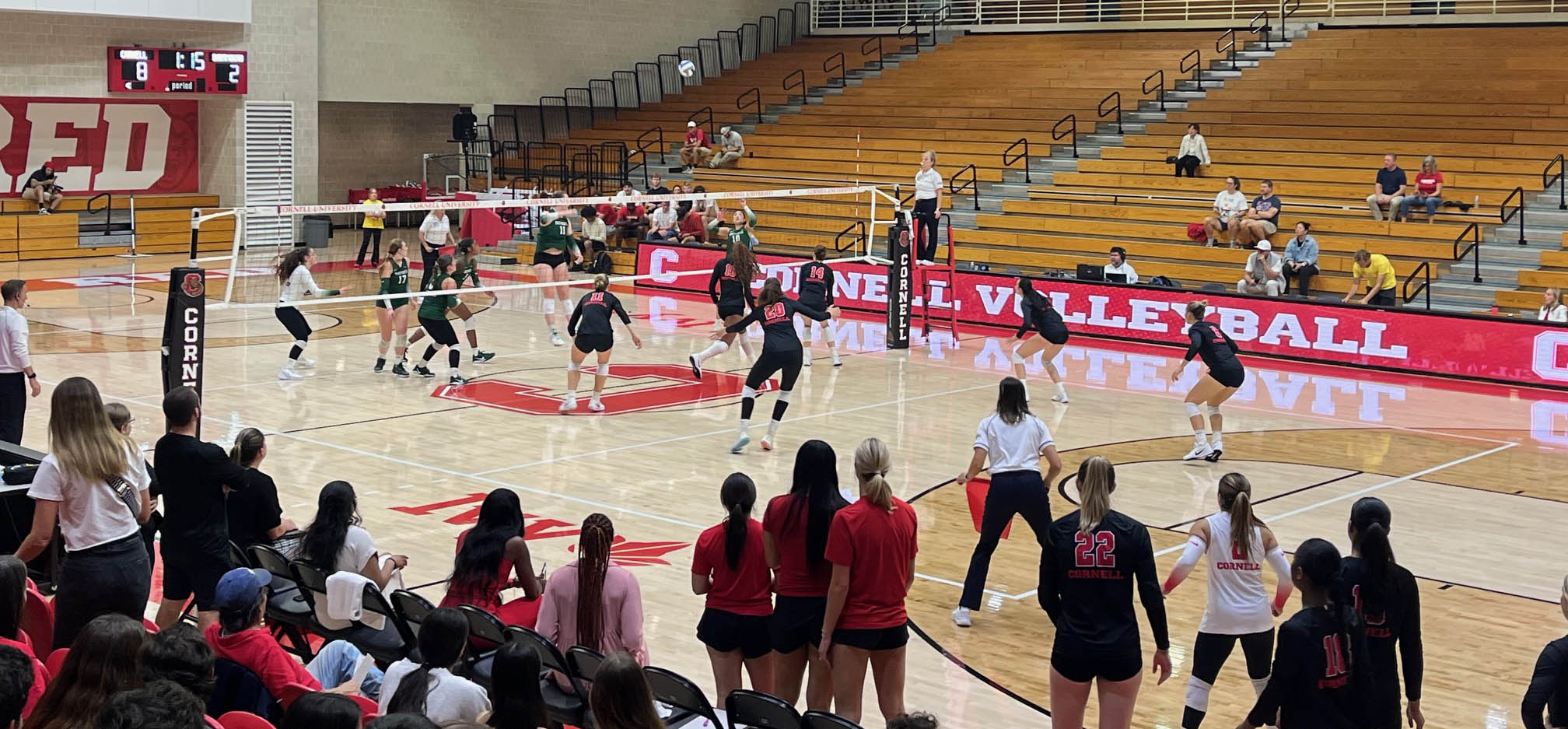 Cornell women’s volleyball swept Dartmouth 3-0. Brett Wood’s (’85) daughter Madison is a junior libero for the Big Red.