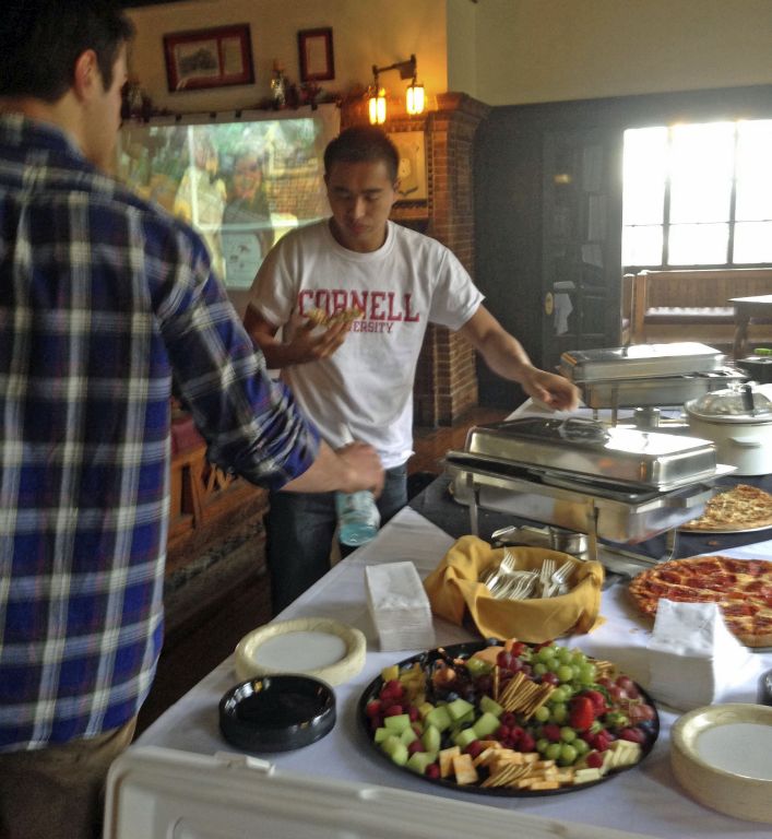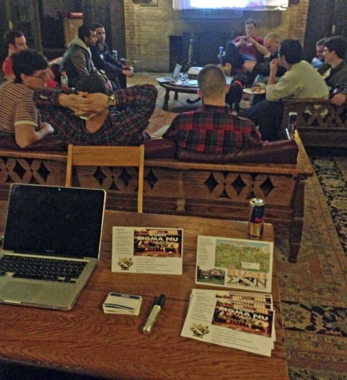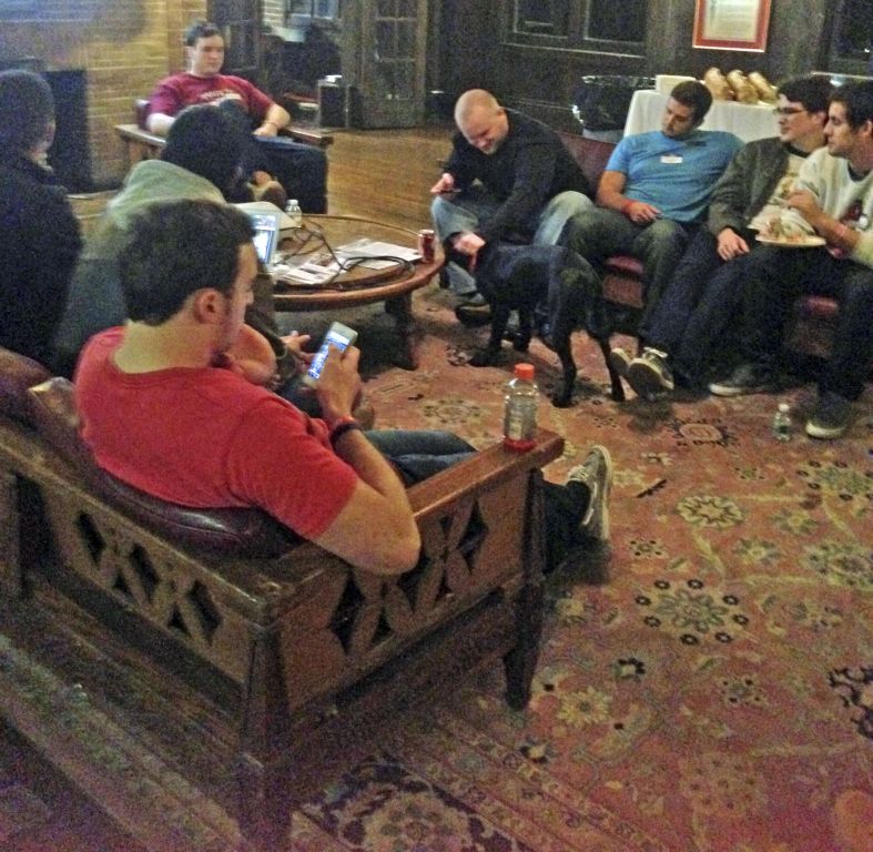 Socializing (clockwise): Pete McDonough, Shane McManamon, Taylor Betros, Don Pavlov, Andrew Nelson, Ben Greenberg.